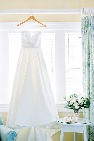 It would be wonderful if you could put all of your rings, jewelry, shoes, veil purse, perfume, invitations and other keepsakes together in one spot for us. Please unwrap your dress but don't worry about styling it - we'll hang it in a beautiful spot!