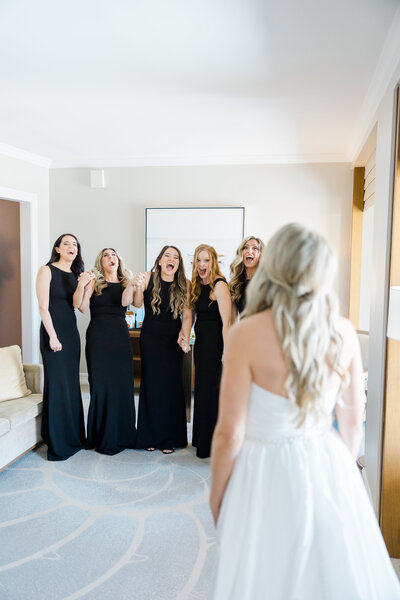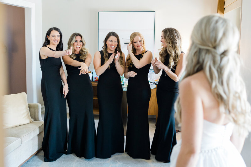 If you're planning on having a first look with your bridal party or a parent, they often feel more comfortable being fully dressed in their wedding attire.