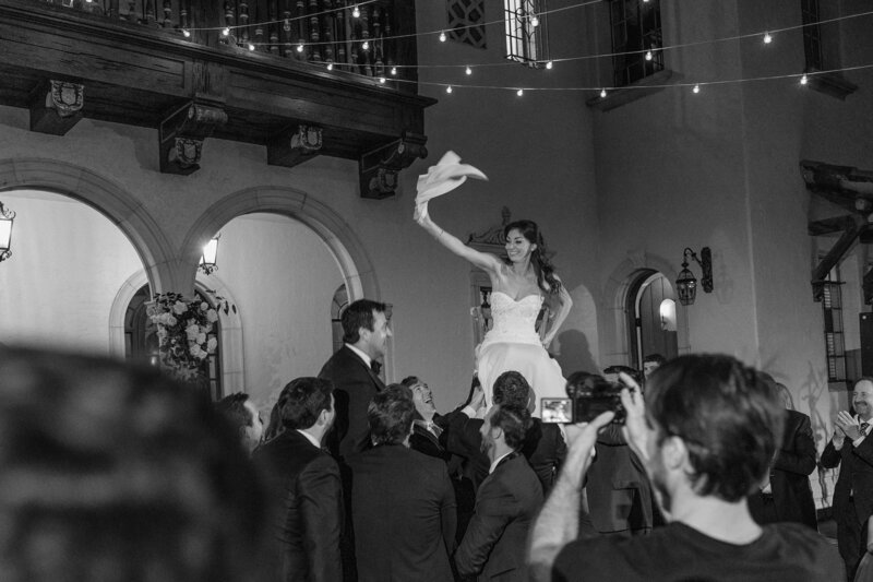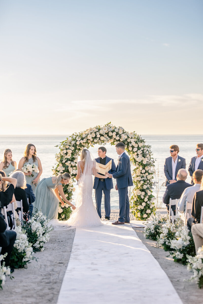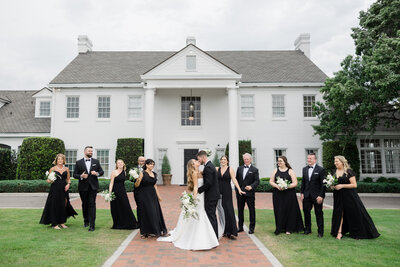 When there is no first look, the majority of the pictures have to be taken after the ceremony. Family pictures are generally done as soon as the ceremony ends because it’s the easiest time to round everyone up. Next up is full bridal party, and then bride and groom portraits. This generally runs into cocktail hour.